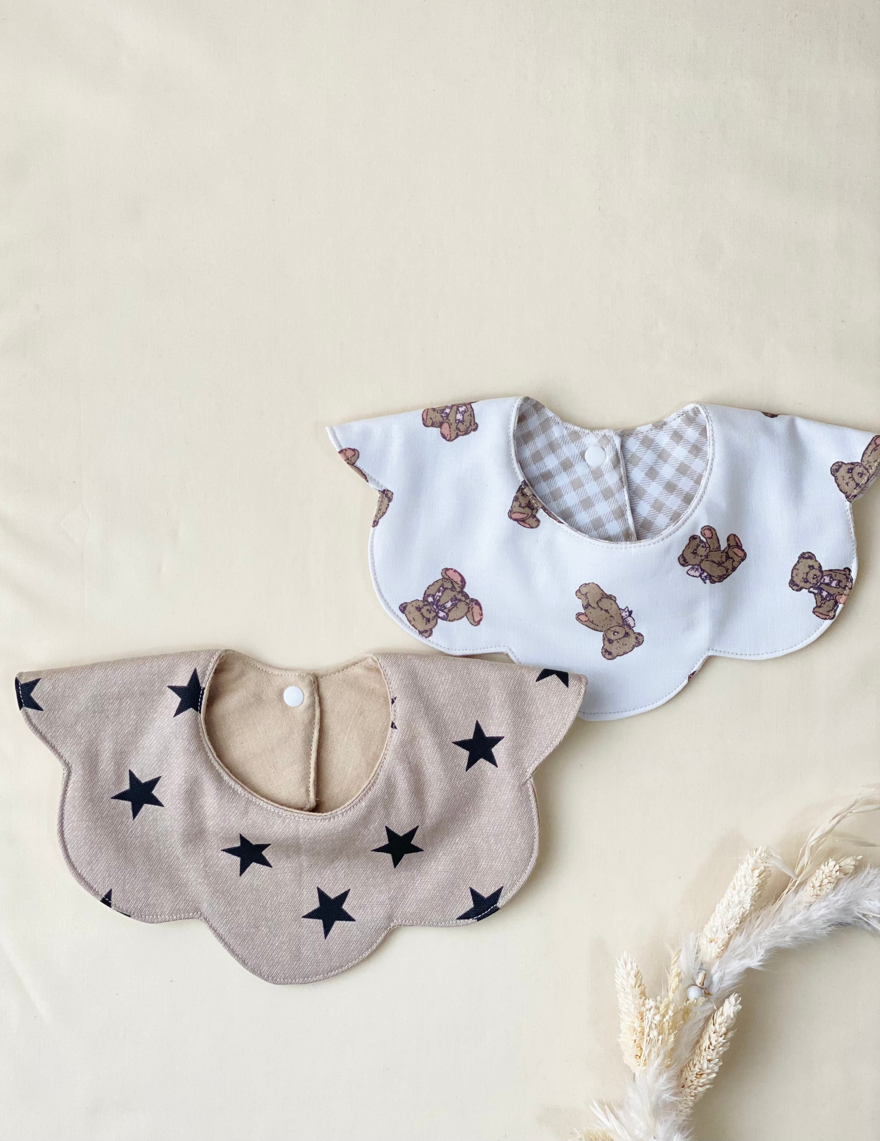“大切な乳児期だからこそ安心して使って欲しい”という思いから誤飲誤食を防ぐシンプルデザイン気分で変えれるリバーシブル仕様吸収性や素材にもこだわった質感などなどこだわりが詰まったベビースタイです